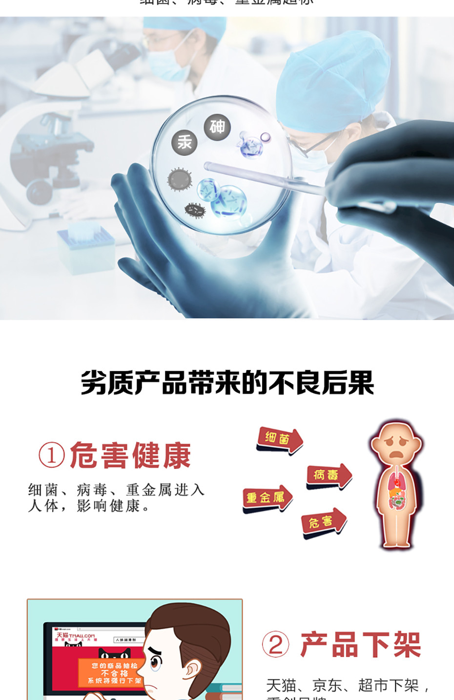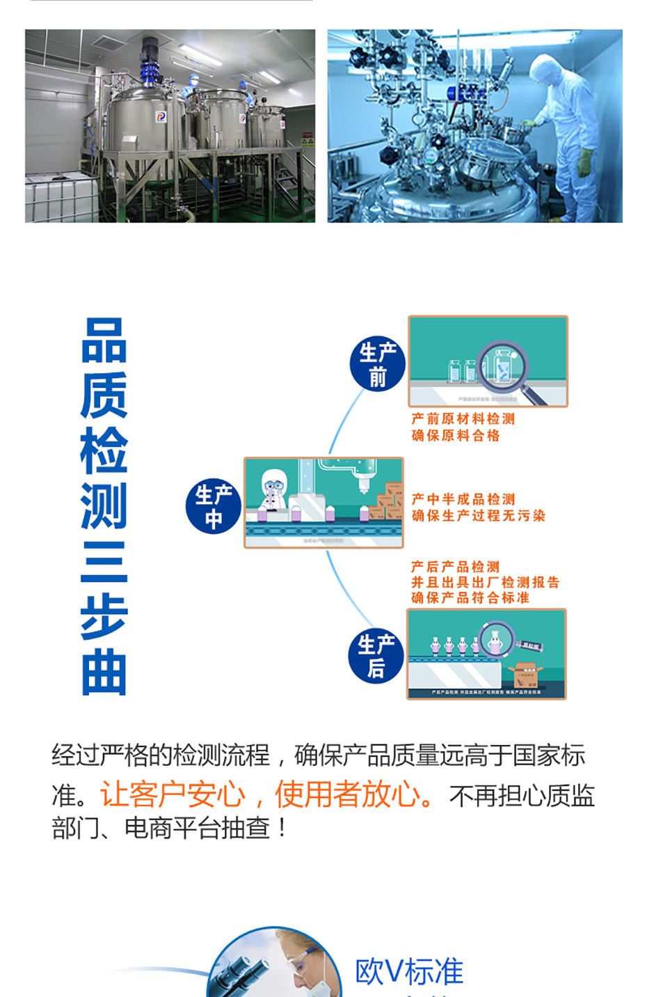 嚴(yán)謹(jǐn)出精品!嚴(yán)格按照GMP生產(chǎn)規(guī)范!生產(chǎn)前原材料檢測,確保原料合格。生產(chǎn)中半成品檢測,確保生產(chǎn)過程無污染。生產(chǎn)后產(chǎn)品檢測并且出具出廠檢測報告,確保產(chǎn)品符合標(biāo)準(zhǔn),從原料到成品層層把關(guān),確保每一件均為精品。不怕被質(zhì)監(jiān)部門、電商平臺抽檢!
